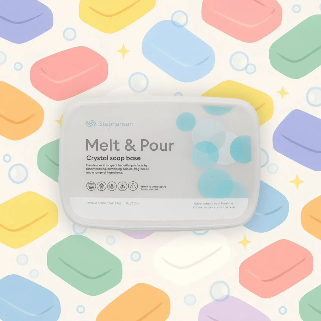 💡 La base CRYSTAL WST donne un savon solide, lisse et légèrement transparent, parfait pour les créations colorées et les inclusions d’objets ou de micas.